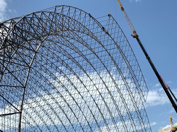 (2)网架加工前应对现场尺寸进行复测,确认无误后方可进行加工、安装;网架制作、运输、安装应遵守《空间网格结构技术规程》JGJ7-2010、《钢网架汾阳螺栓球节点》JG/T 10-2009、《钢网架汾阳螺栓球节点用高强度螺栓》 GB/T 16939-2016、《汾阳钢结构汾阳工程汾阳施工规范》 GB50755-2012、《汾阳钢结构汾阳工程施工质量验收标准》 GB50205-2020。